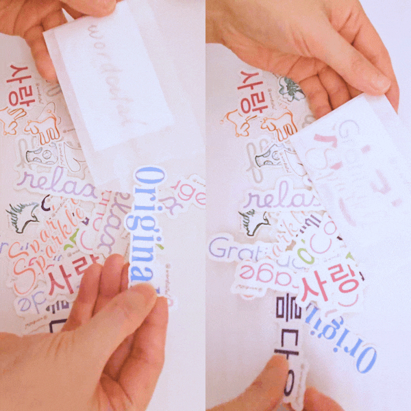 Not sure which words to choose? Let us surprise you with a mix of small and large premium stickers in vibrant colors.